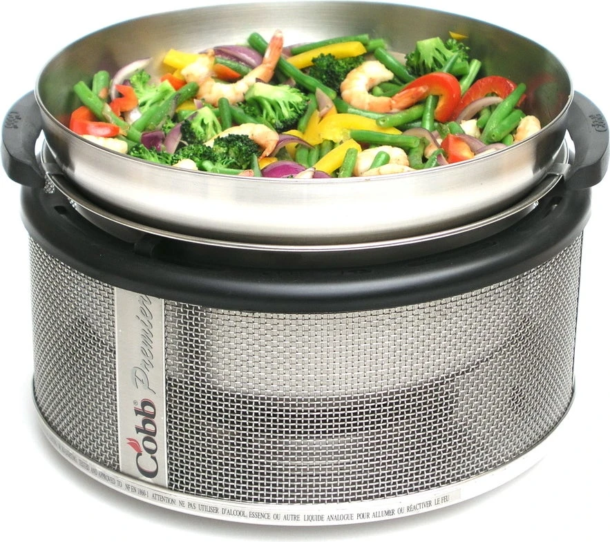 Cobb wok, met de Cobb wok maakt u heerlijke roerbakgerechten en eenpansmaaltijden. De wok is speciaal op maat gemaakt voor de Cobb. De wok kan ook gebruikt worden als hapjespan of als sauspan. De wok valt mooi diep in de kom van de Cobb barbecue zodat hij dicht op de warmtebron zit.