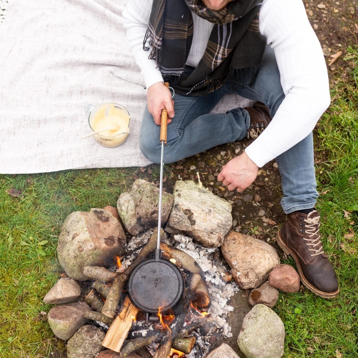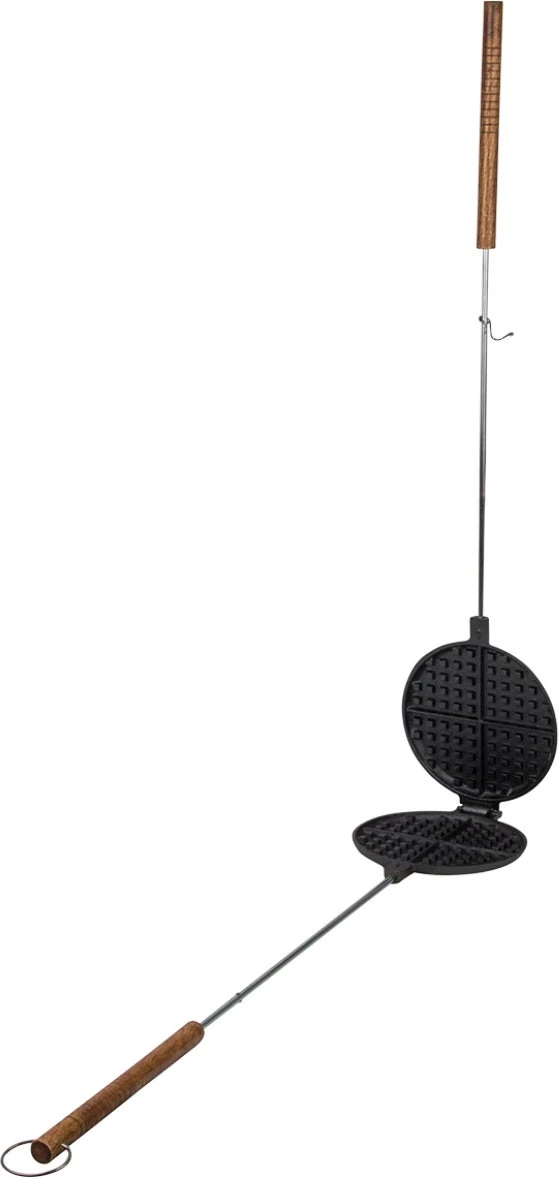 Met dit barbecue wafelijzer Fancy Flames van Esschert Design wordt buiten koken wel heel erg leuk. Het wafelijzer is gemaakt van gietijzer en heeft een berkenhouten handvat. Maak wafels boven het open vuur of op de barbecue.