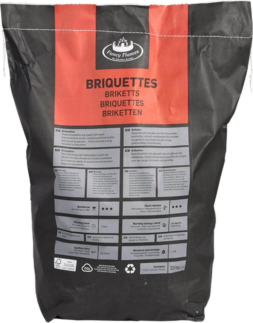Deze briketten zijn gemaakt van afvalhout van uitheemse, snelgroeiende boomsoorten en zorgen voor een lange constante verbranding.