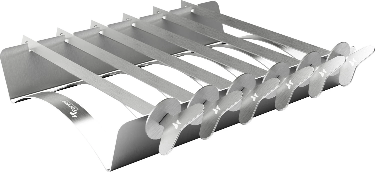 Multifunctioneel braadrek dat olie en vet van het vlees afvoert. Ook te gebruiken voor het bereiden van spare ribs of spiesen. Incl. 6 metalen spiesen.