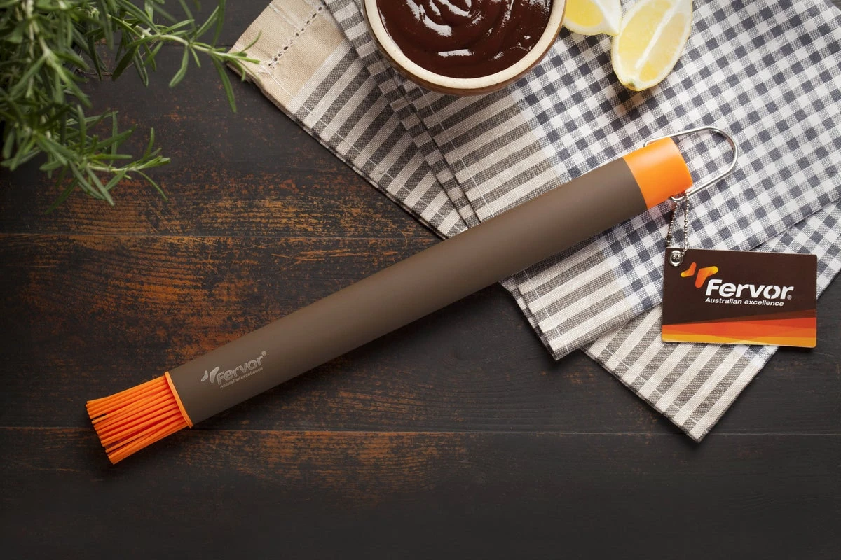 De Fervor silicone barbecue insmeerkwast is ideaal voor het marineren van uw gerechten. De Fervor siliconen kwast heeft een lengte van 42 cm en is voorzien van warmte resistente silicone borstelharen. Ontworpen voor betere verdeling van sauzen en marinades.
