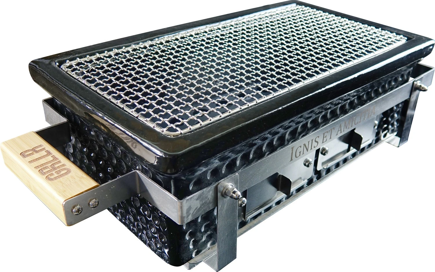 Het trendy zwarte keramiek waarmee deze Osaka Shichirin is gemaakt, zorgt niet alleen voor een stevige barbecue die heet kan worden. Met de ventilatie aan de zijkant van de tafelbarbecue regel je de luchtstroom en temperatuur in een handomdraai. Het roestvrijstalen grill rooster is zo gemaakt dat vetten en olieën worder afgevoerd zonder dat er voedsel op de houtskool terecht komt.