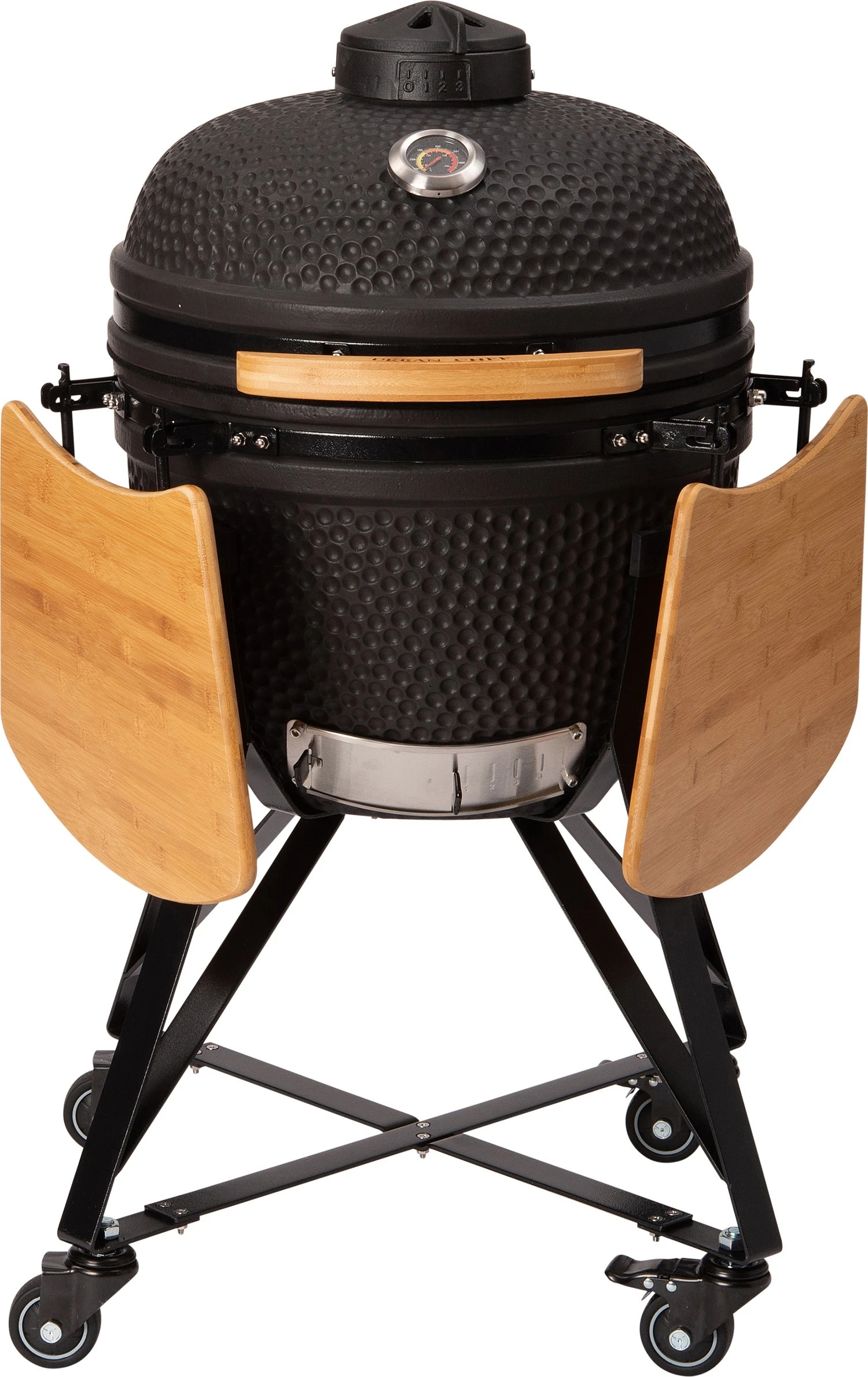 De Intratuin kamado is gemaakt van hoogwaardig keramiek. Keramiek heeft de eigenschap de warmte lang vast te houden en is daarom uitermate geschikt voor de ‘Slow Cooking’ techniek. De temperatuur is eenvoudig te regelen met de luchtinlaat aan de voet en de luchtuitlaat in de deksel van de kamado. Door de handige zijtafels kan je gemakkelijk je barbecue gereedschap kwijt. Inclusief barbecue beschermhoes en plate setter.