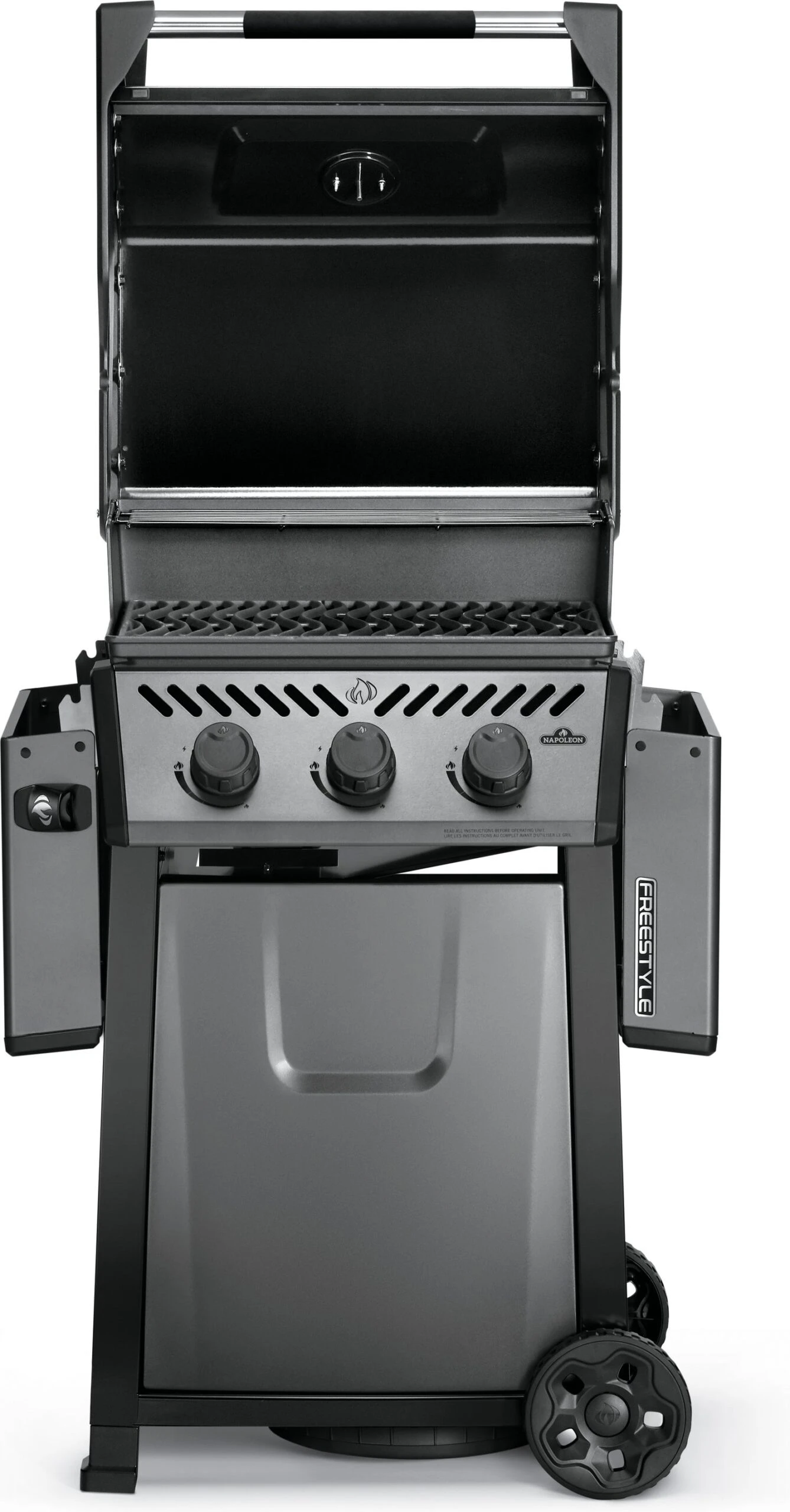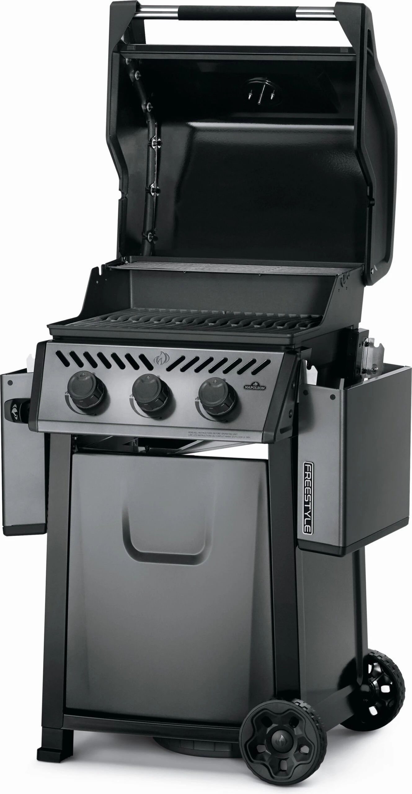 De nieuwste uitblinker van Napoleon®, de Freestyle! Klein maar fijn en een echte krachtpatser. De Freestyle 365 heeft dankzij de inklapbare zijtafels een bijzonder compact ontwerp. De drie RVS hoofdbranders zorgen dankzij de geëmailleerde hitteverdelers voor een gelijkmatige hitteverdeling. Ook de reiniging van deze barbecue is dankzij de uitneembare vetopvanglade erg eenvoudig. Tot slot zijn het de details zoals de praktische flessenopener aan de zijtafel en de soft-touche handgreep bij de deksel die deze barbecue uniek maakt in zijn prijsklasse.