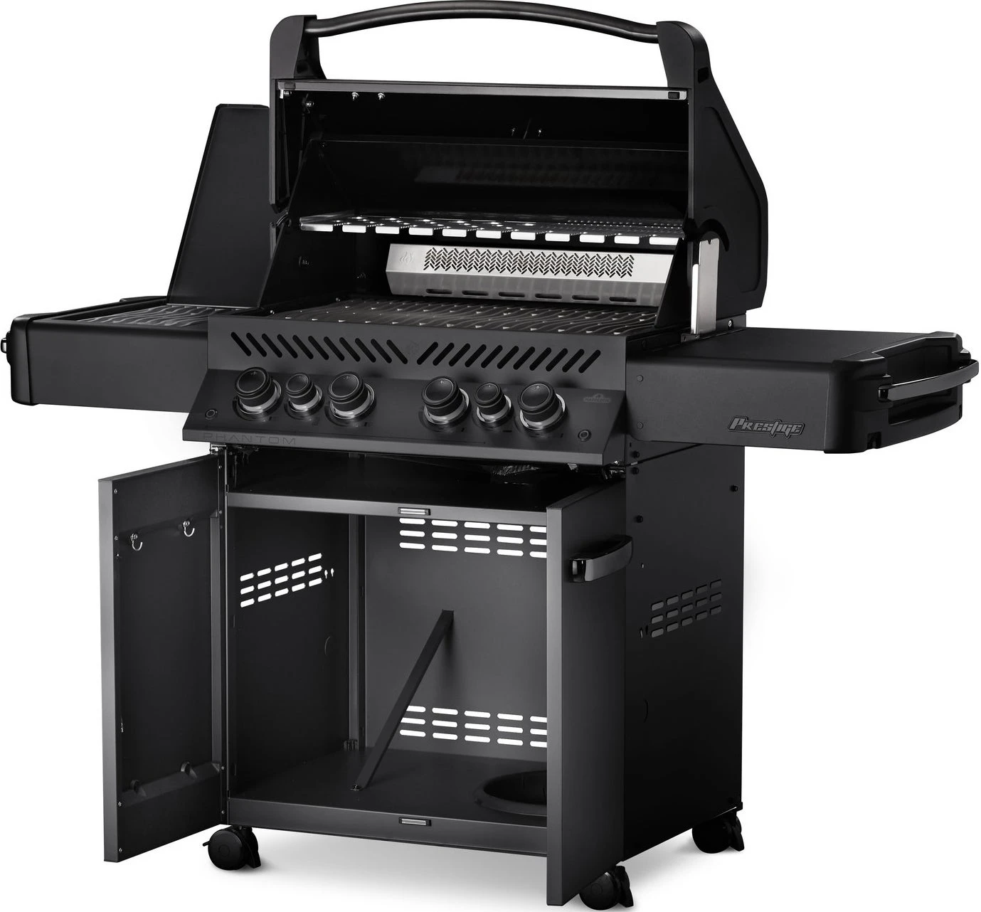 De zijtafels zijn praktisch en slim ontworpen van RVS. Links bevindt zich de SIZZLE ZONEâ„¢ zijbrander. De rechterzijde is inklapbaar waardoor de barbecue nog gemakkelijker op te bergen is. De grote zijtafels bieden genoeg plaats om de meest lekkere gerechten voor te berijden. Daarbij zijn de zijtafels praktisch te gebruiken door speciale vakjes om kruiden of drankjes neer te zetten of tangen en spatels op te hangen.