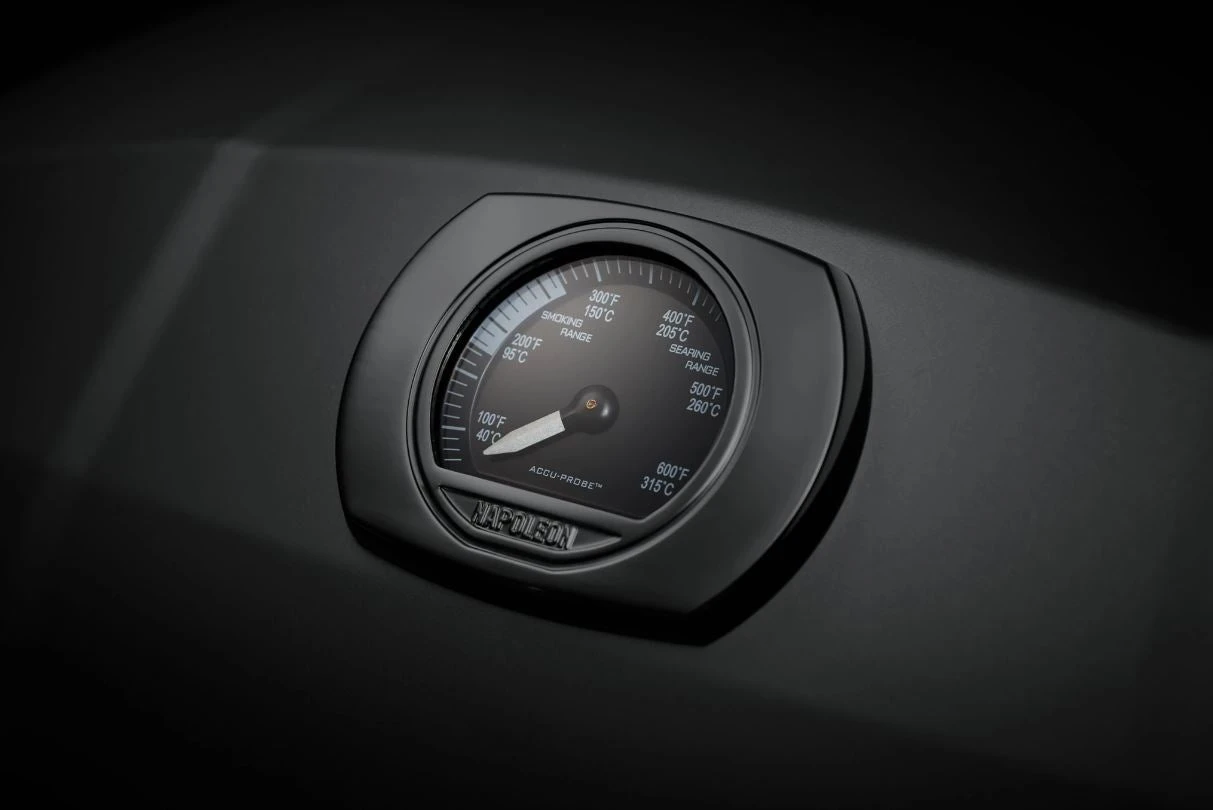 Het innovatieve design beschermt de branders tegen wind en creëert zo niet alleen de ideale barbecue omgeving voor direct en indirect grillen, maar ook voor het roken met de Napoleon® smokerpipe. De barbecue beschikt over twee individuele RVS-buisbranders met JETFIRE™ ontsteking. De geïntegreerde ACCU PROBE™ deksel thermometer leest u eenvoudig de temperatuur af voor de ideale barbecue omstandigheden.