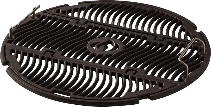 Gietijzeren grillrooster voor 47 cm Ø kogelbarbecues, met opklapbaar zijdeel, voor eenvoudig bijvullen van houtskool.