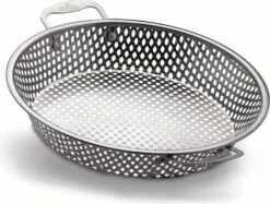 De Napoleon groentekorf RVS is een handzame barbecueaccessoire voor het grillen van groenten die je als bijgerecht eet bij je vlees- en visgerechten van de barbecue. Het is een sierlijke korf met hoge, iets gebogen randen die voorkomen dat je groenten tijdens het grillen op het rooster van je barbecue terechtkomen. Maak iedere barbecueparty wat extra ruimte vrij op je barbecue voor je groentekorf en grill tegelijkertijd groenten, vlees en vis!