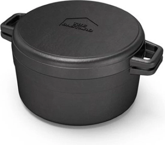 De Bastard Dutch Oven & Griddle Medium is een product van The Bastard waarmee je gemakkelijk en op hoge temperaturen vlees, vis of andere producten kan braden. Niet alleen dat, maar ook heerlijke soepen en stoofpotten kun je klaarmaken in de Bastard Dutch oven & griddle. Door de gerechten klaar te maken in deze pan op jouw Bastard zorg je ervoor dat jouw gerechten een heerlijke rokerige smaak krijgt. De braadpan is geschikt voor gebruik op alle warmtebronnen. Het product is gemaakt van pre-seasoned gietijzer. Dit betekent dat de pan vooraf ingebrand is met plantaardige olie, waardoor de pan gelijk klaar voor gebruik is. De pan zal wel door veel gebruik steeds prettiger werken en betere kookresultaten geven. De pan hoef je enkel schoon te maken met warm water. Bovendien kan je de pan met water laten koken om hardnekkige bakresten te verwijderen. Met deze pan kook je de heerlijkste gerechten op je Bastard! De barbeque pan heeft een diamter van 24 bij een hoogte van 14 cm.