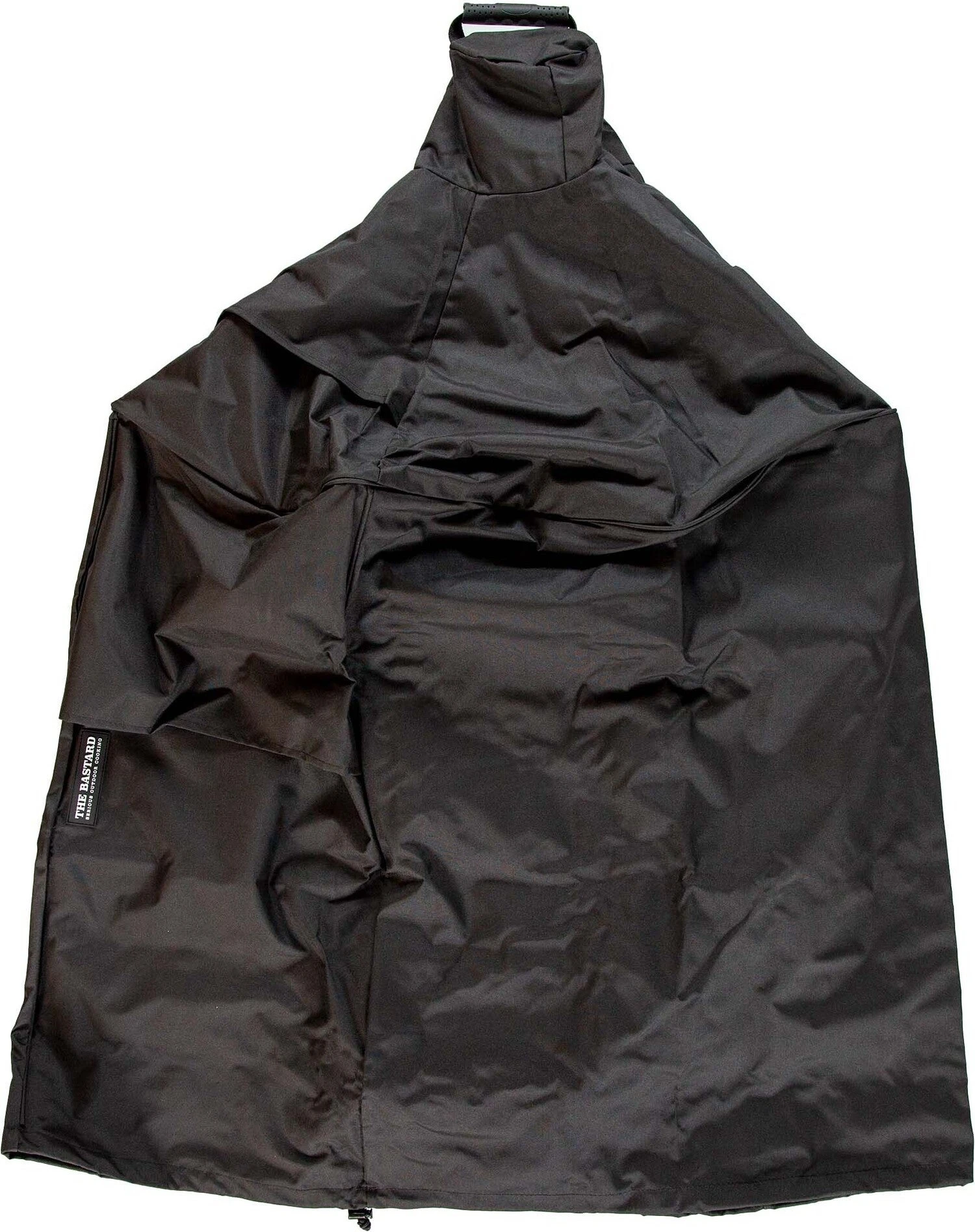 Een regenhoes speciaal ontworpen voor jouw Bastard, dankzij klittenband een nog betere afsluiting. Gemaakt van de beste kwaliteit PU Coating voor UV bescherming en dankzij speciaal ontworpen ventilatieroosters zal je Bastard elk seizoen voor je klaar staan. De regenhoes van The Bastard zorgt ervoor dat je kamado beschermd wordt tegen weer en wind. Door de afsluitende werking van de regenhoes in combinatie met mogelijke condensvorming door optrekken vocht, bestaat echter de kans op schimmelvorming in of aan de kamado. Deze mogelijke condensvorming kan met name afdrukken, vlekken en/of schimmel op de bamboe onderdelen van je The Bastard veroorzaken. Daarom raden wij je aan de eventuele zijtafels van je kamado af te halen voordat de kamado (langdurig) bedekt wordt door de regenhoes. Zorg ervoor dat de kamado goed droog is, voordat de regenhoes er over heen wordt gedaan. De zijtafels kun je het beste op een droge plek opbergen. Ook raden we aan de kamado zo nu en dan te luchten door bij mooi weer de hoes er een poosje af te halen. Op deze manier blijft je The Bastard zo lang mogelijk mooi!