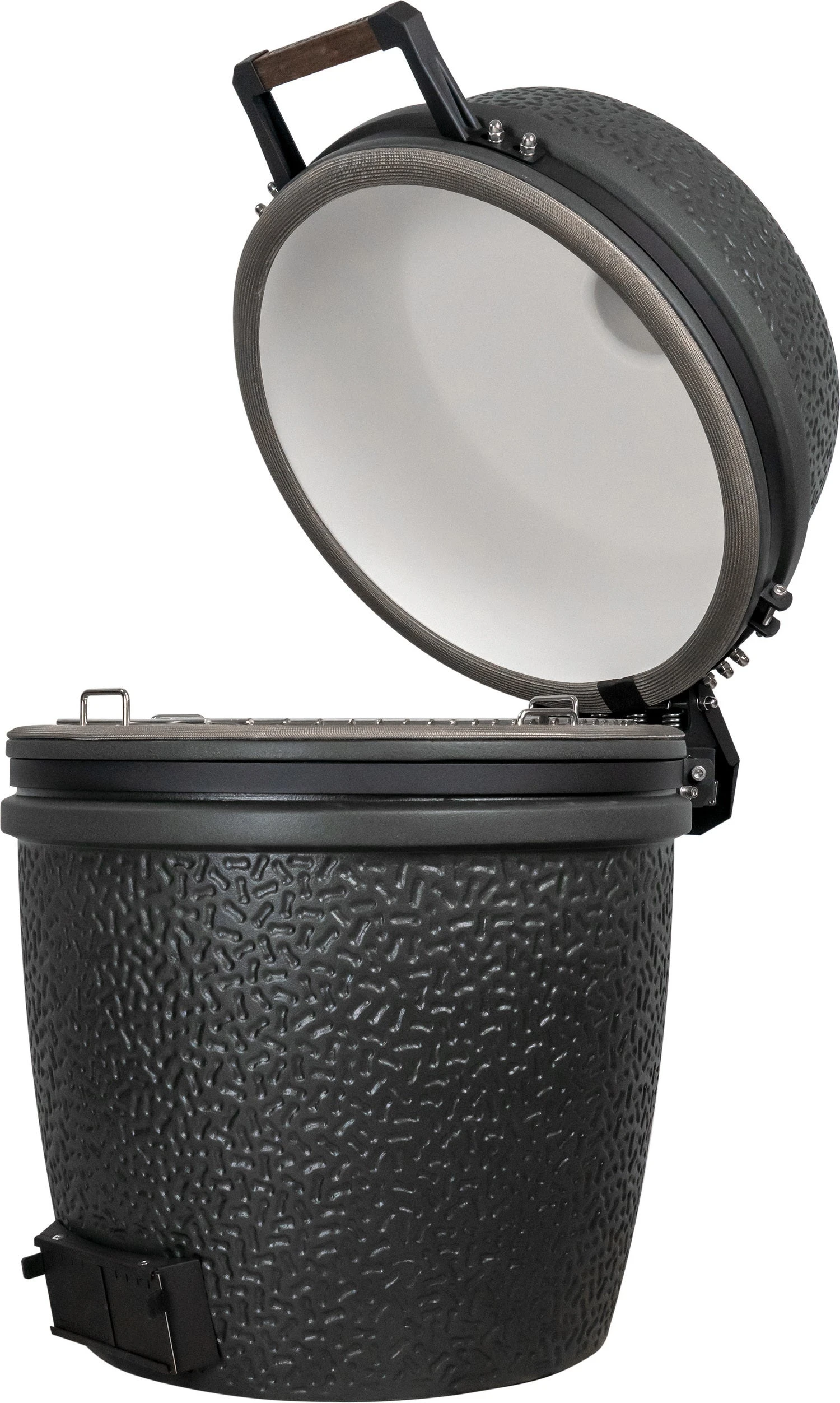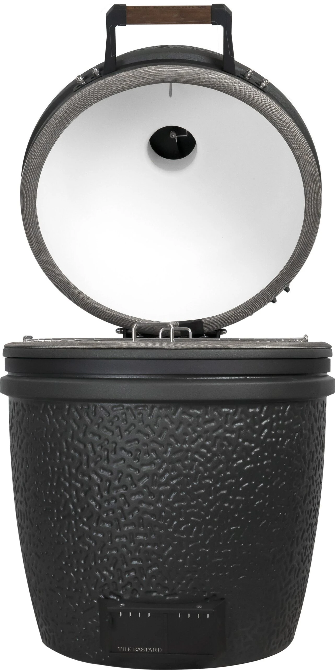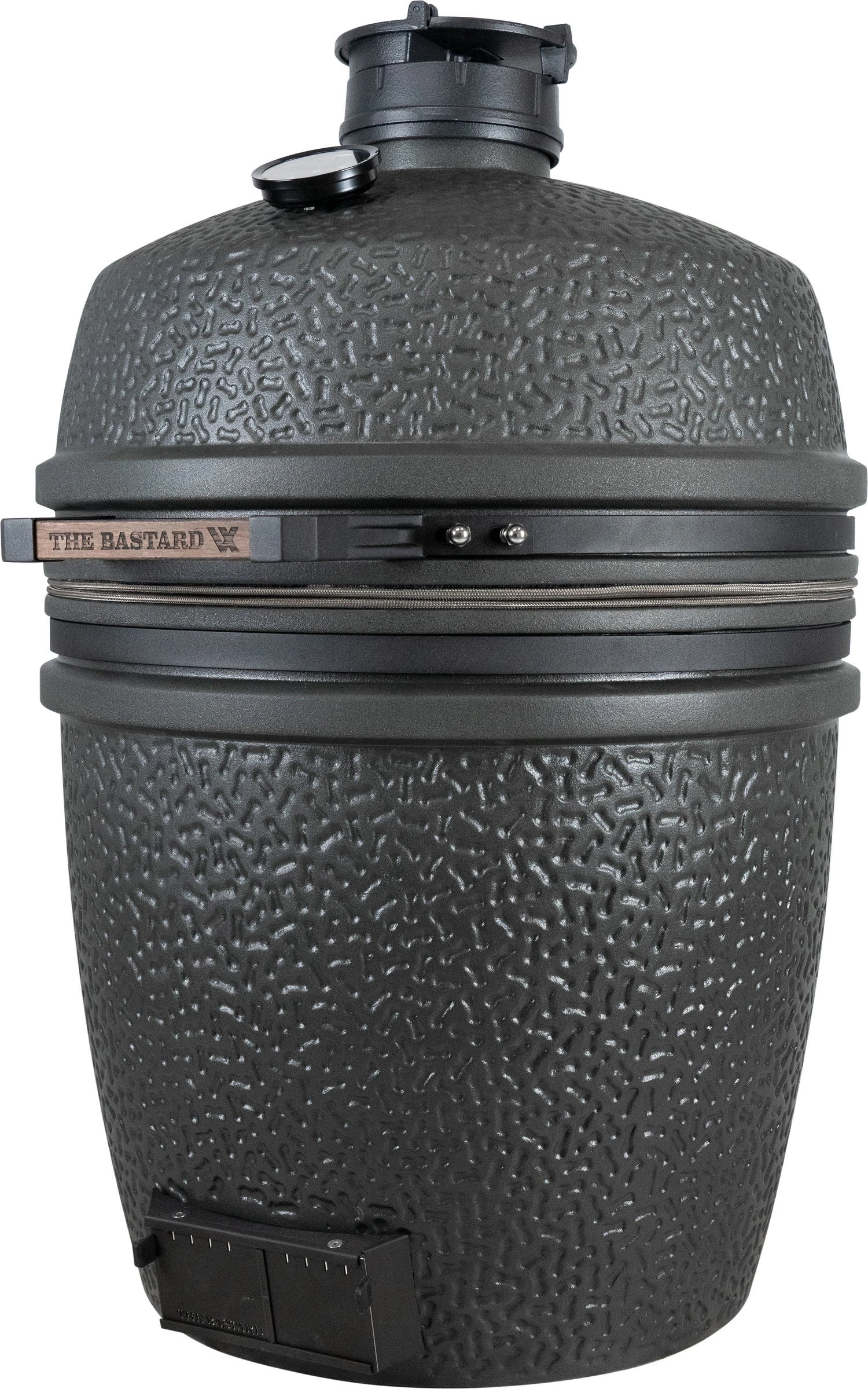 Neem iets goeds, probeer te verbeteren, daag jezelf uit en maak het nog beter! Dat is The Bastard VX Large! Draai de deksel van de nieuwe top cap van The Bastard VX Large om en verhoog de luchtstroom zonder het bovenste gedeelt te hoeven verwijderen. De verbeterde ergonomische handgreep met gepoedercoate heavy duty beugels van geperste RVS. Het scharniet is geoptimaliseerd voor inbouw in je buitenkeuken of op je tafel. Zijn sterke hefvermogen maakt het hanteren makkelijker dan ooit tevoren. The Bastard VX heeft een dubbele schuifdeur. Het unieke ontwerp is modulair, waardoor het kostbare keramiek volledig onaangetast blijft. Mooi van buiten en van binnen! Groter Ash Bucket en Charcoal Basket voor langere grill-sessies.
