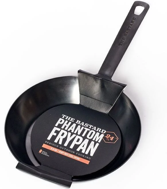 De The Bastard Phantom koekenpan heeft een diameter van 24 cm en is gemaakt van carbonstaal. Het oppervlak van de pan is genitreerd, het is sterk, roestvrij en gaat jaren mee. De Phantom pan is geschikt voor op hoog en direct vuur en heeft een anti-aanbakwerking. Gebruik de koekenpan voor het bakken van diverse ingrediënten op de barbecue.